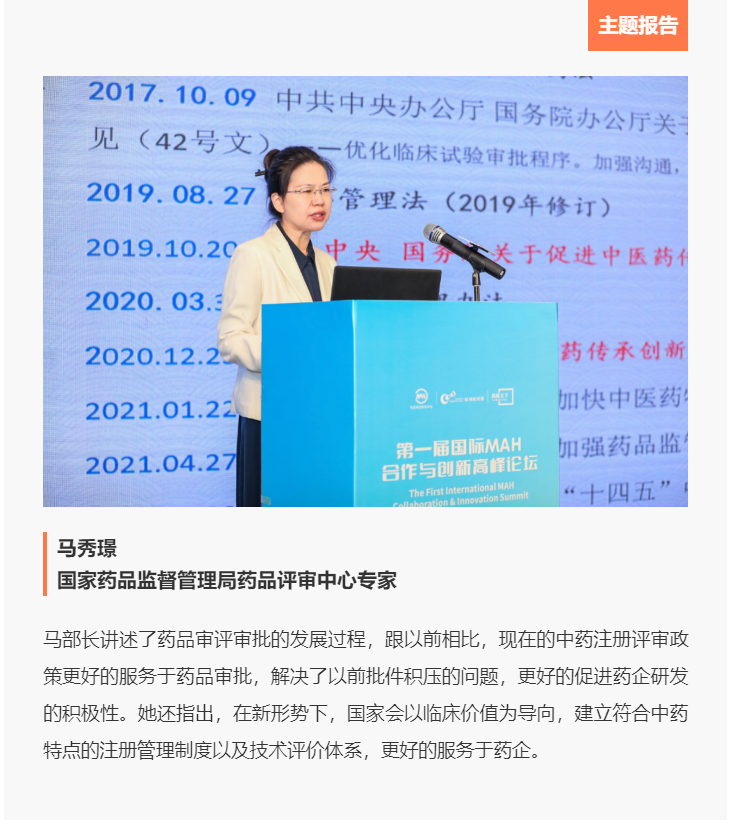 MAH制度的开展离不开专家智库的建言、企业的实践对接、人才的集聚研讨以及数据的共享融通。此次论坛开启了四件事关日后行业开展的重要事件。